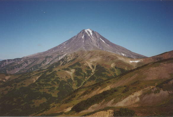 Před obědem vyrážíme směrem k základně Apachončič vzdálené asi 18 km. Procházíme písečnými výplavovými plošinami. Místy se boříme celkem hluboko a postupujeme pomalu. To nejhorší však má ještě přijít. Kaňon řeky Suché Kapicy. Blížíme se k okraji kaňonu a již z dálky slyšíme, že toto místo až tak suché nebude. Zkalená voda se řítí kaňonem obrovskou rychlostí a zdá se, že nalézt brod bude nesnadné. Asi po hodině hledání brodu jsem patřičně vytočen a přeskakuji místo s nejsilnějším proudem. Nakonec se všichni tři dostáváme šťastně na druhý břeh a vylézáme na strmý útes kaňonu. Potkáváme skupinu turistů vedenou Rusy. Doporučují nám cestu. Ignorujeme tak radu geologů, což nás bude stát hodně sil. Stopy se brzy ztrácí v řečišti. Dostáváme se na hranici keřů. Terén začíná být obtížný - keře, výmoly a hřbítky. Na protější stráni se pase medvěd. Únava je ihned pryč. Blížíme se k němu. Pískám na medvěda, ten pozorní a větří naším směrem. Končíme záběr, ještě na něho křiknu, medvěd zapanáčkuje a mizí. Jdeme ještě hodinu nepříjemným terénem a za neustálých útoků komárů a mochniček doklopýtáváme k domku vulkanologů pod lávovým proudem z roku 1946. Nádherný domek má jednu vadu - nemůžeme nalézt vodu. Hmyz je opravdu protivný a jen lituji, že jsem si nevzal moskytiéru. Půjčuji si tedy od Jany a asi za půl hodiny narážím na pramen pod lávovým proudem. Ihned jsem obalen hmyzem a naplnit vak je utrpením - a to mám holé jen ruce. Vyrážíme kolem oběda na sever k bývalé základně vulkanologů, která je branou k výstupu na Ključevskou. Cesta trvá dlouho. Je na ní spousta hlubokých kaňonů, které nás stojí hodně času a sil. Na celé trase není voda, tu doplňujeme bobulemi šíchy. Čtyři kilometry před základnou padají mraky a není vidět ani na 100 m. Je to k vzteku - tak blízko báze a nezbývá než čekat. Naštěstí se brzy vyjasňuje a my pokračujeme. Báze je obsazená omladinou z Dvadcatky - třicet kilometrů vzdáleného vojenského objektu. Ubytováváme se v patře a dáváme si vydatnou večeři. Počkáme 1-2 dny na počasí a pak se uvidí.